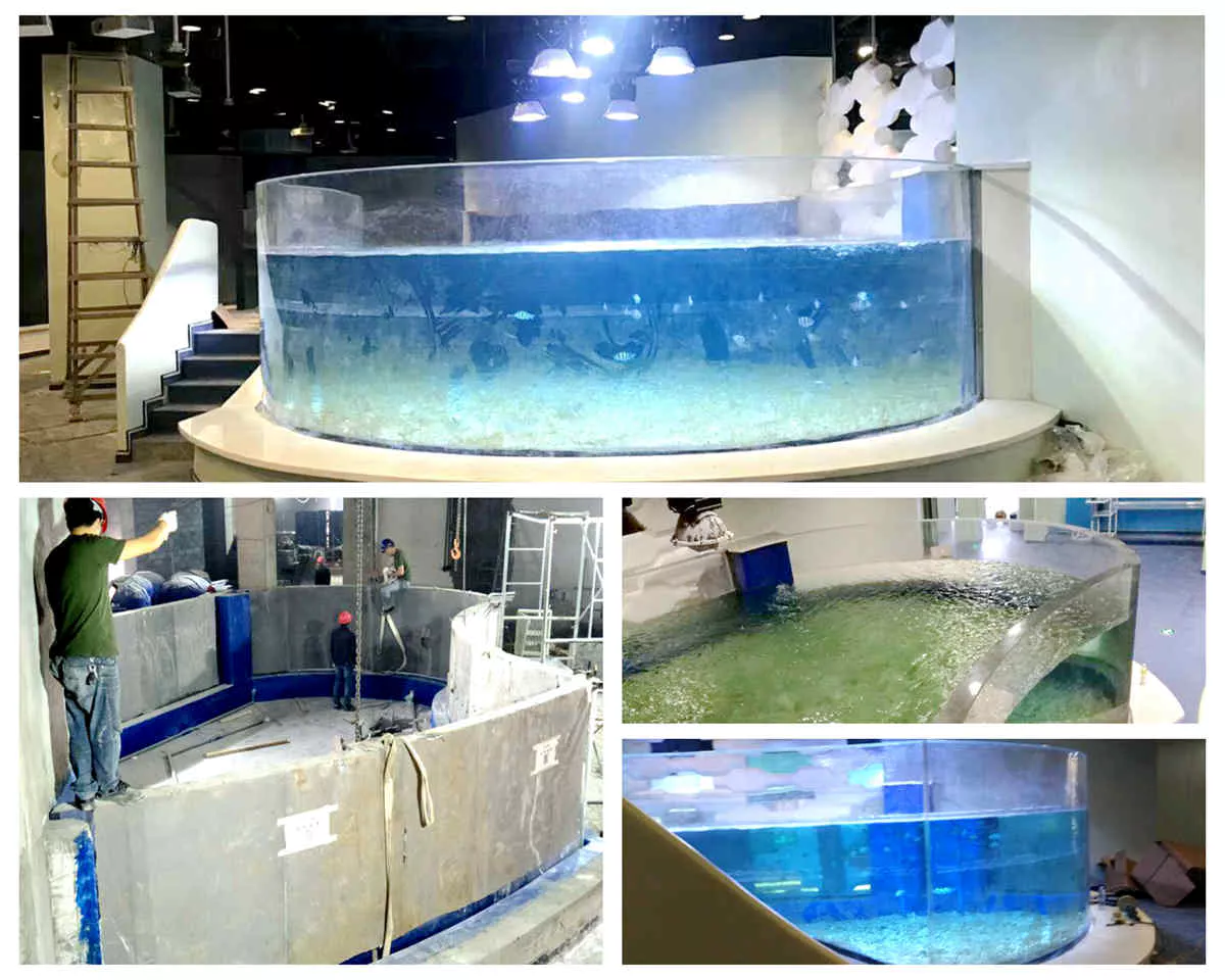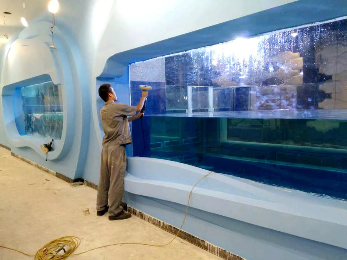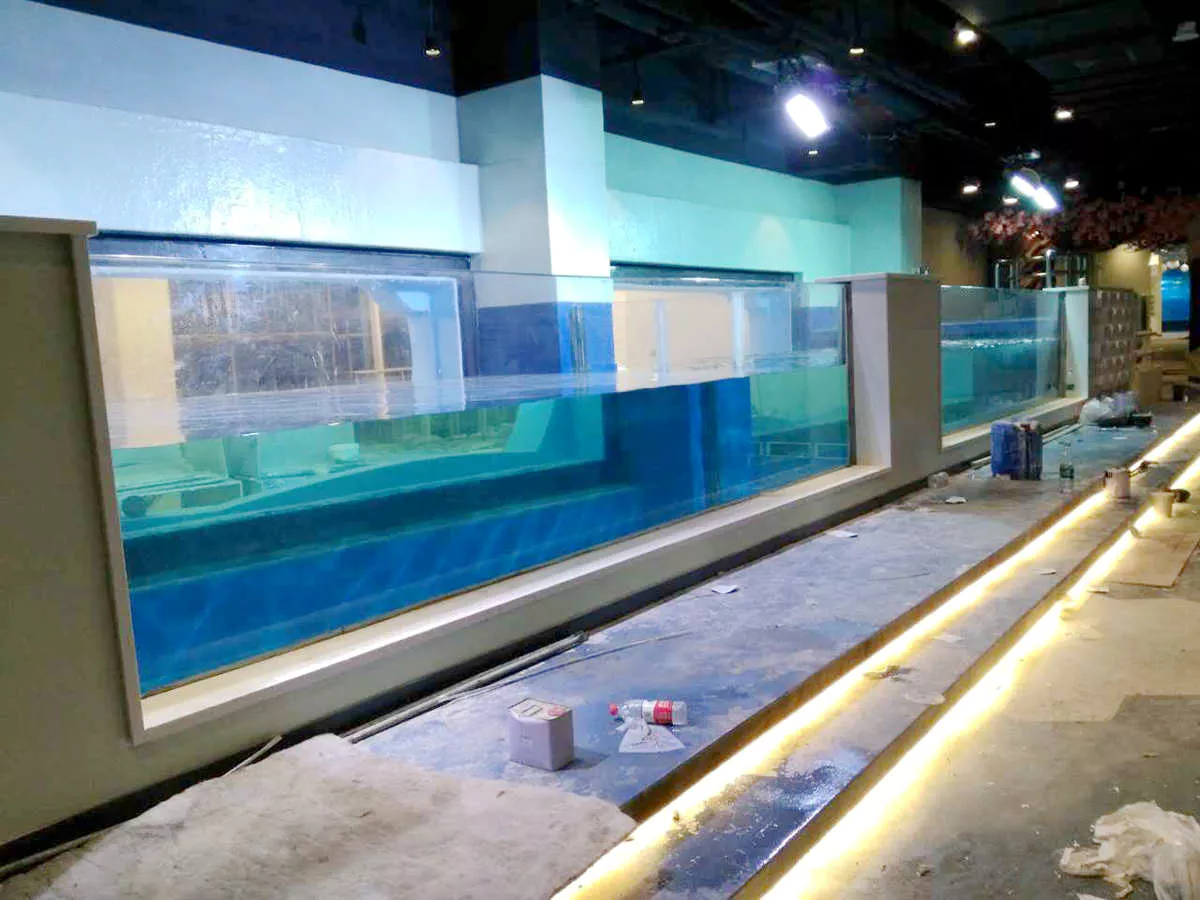 Large public freshwater or saltwater aquariums for exhibition or study that require clear and visible acrylic window panels for viewing fish and water features