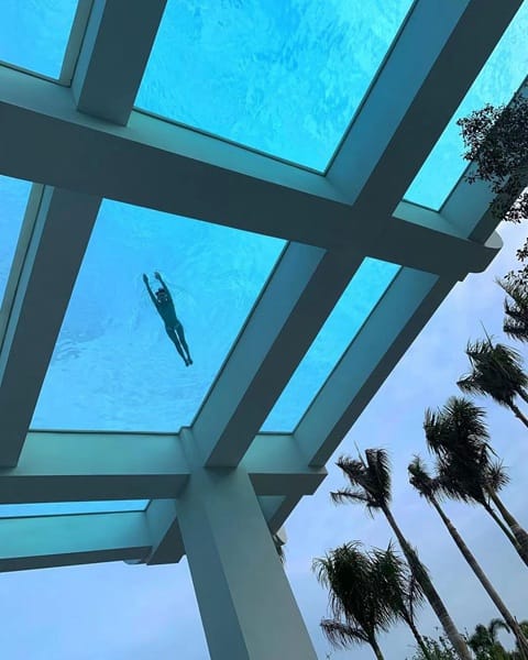 Floor panels are ideal for cantilevered swimming pools, and can also be used to create underwater skylights for rooms and spaces below the pool